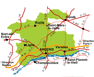 autoroute A11, sortie Ancenis, rejoindre la RD723, prendre la direction de Nantes, à la sortie d'Ancenis, au rond-point prendre Couffé/Ligné. A Couffé prendre direction Ligné la D23. Au lieu-dit La Huetterie, prendre à gauche sur 2,5 km.